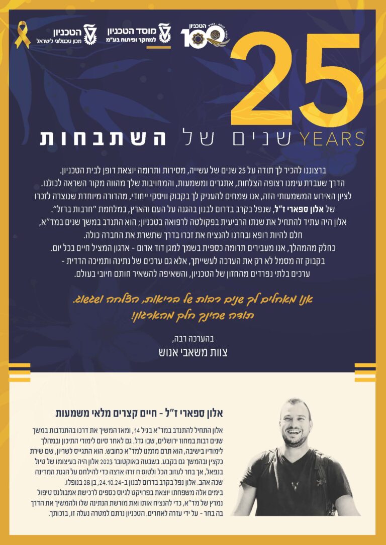 טקס לעובדות ולעובדים המציינים 25 שנים במוסד הטכניון